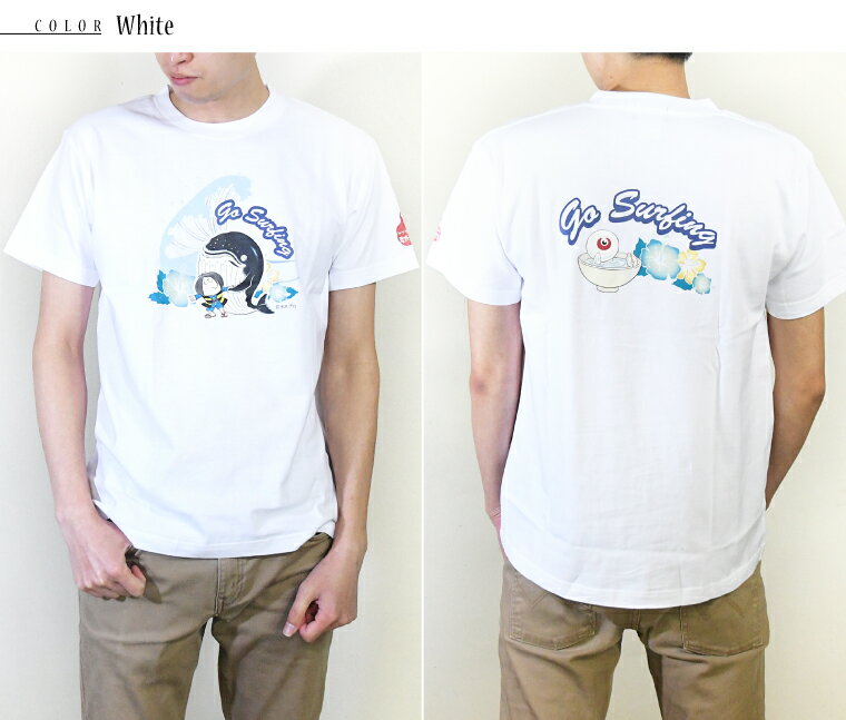 ゲゲゲの鬼太郎コラボ 夏シリーズ(ハワイアン) / 和風Tシャツ フルカラー転写プリント メンズファッション プリントTシャツ 半袖 レディースファッション ワンポイントTシャツ 重ね着 クルーネック ユニセックス