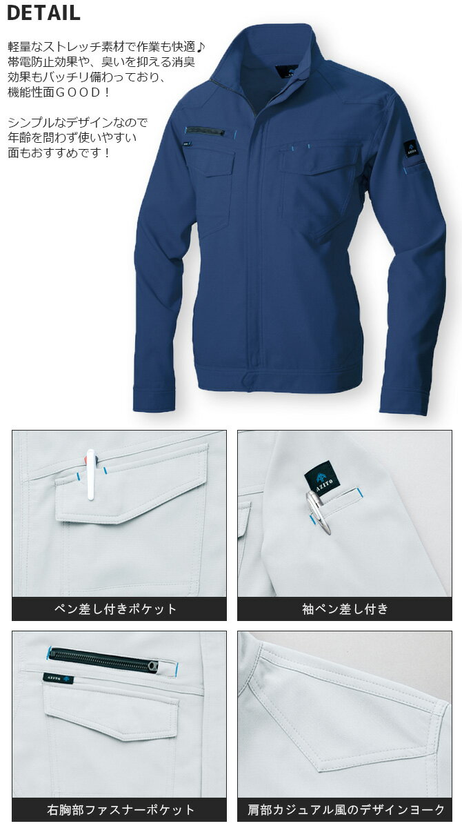 長袖ブルゾン AZITO(アジト) AZ-2901 AITOZ(アイトス) オールシーズン メンズ 帯電防止 軽量ストレッチ 消臭テープ ワークジャケット 作業服【3/4(月)20:00〜3/11(月)1:59迄ポイント10倍】