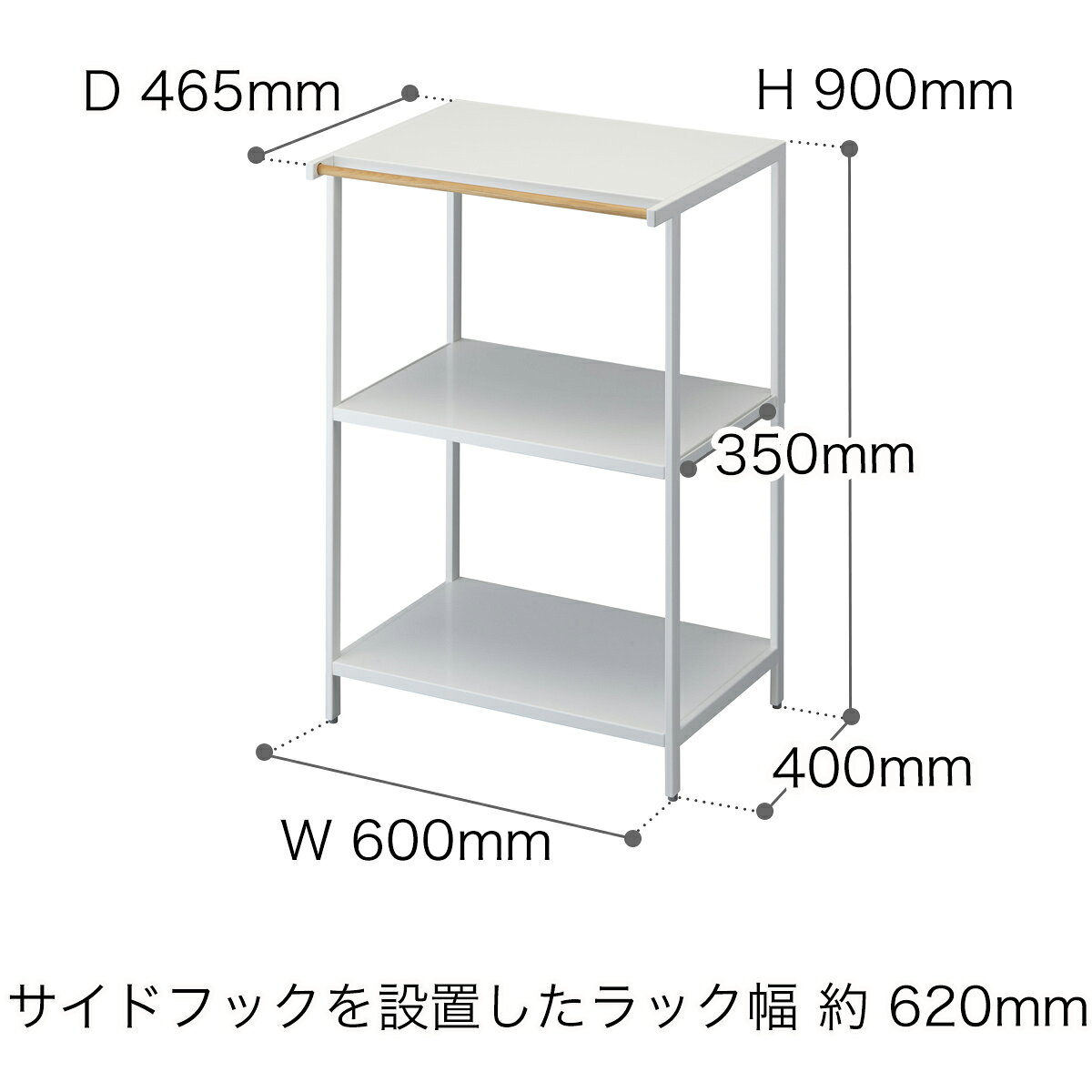 品番 03597/03598 サイズ 約 幅 600mm×奥行き 465mm×高さ 900mm棚 内寸:約 幅 570mm×奥行き 400mm×高さ 180mm( 1段あたり約 20cmずつ高くなります )ハンガーバー 直径:約 2cm 重さ 約 10.5kg 素材 本体:スチール( 粉体塗装 )ハンガーバー:天然木( ラッカー塗装 ) 耐荷重 各棚:約 8kgハンガーバー:約 3kgフック1つあたり:約 500g 付属品 フック×5、ネジ穴隠し用シール×12、六角レンチ 備考 組立式 ご注意 ※サイズは個体により若干の差異がある場合があります。